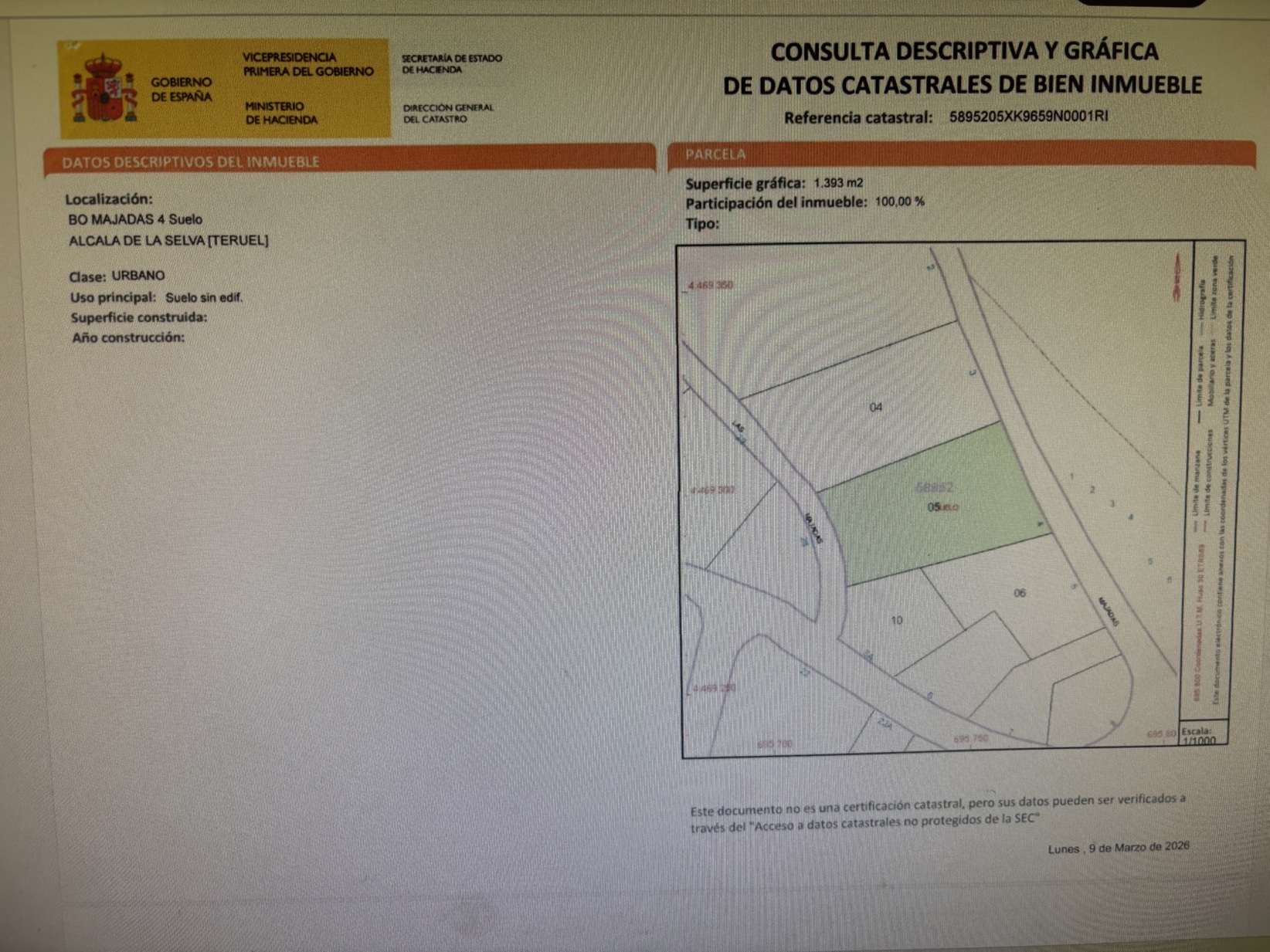 Exclusiva parcela urbana de casi 1.400 m² situada en pleno corazón del barrio de Las Majadas, en Alcalá de la Selva, un entorno privilegiado rodeado de naturaleza y tranquilidad.