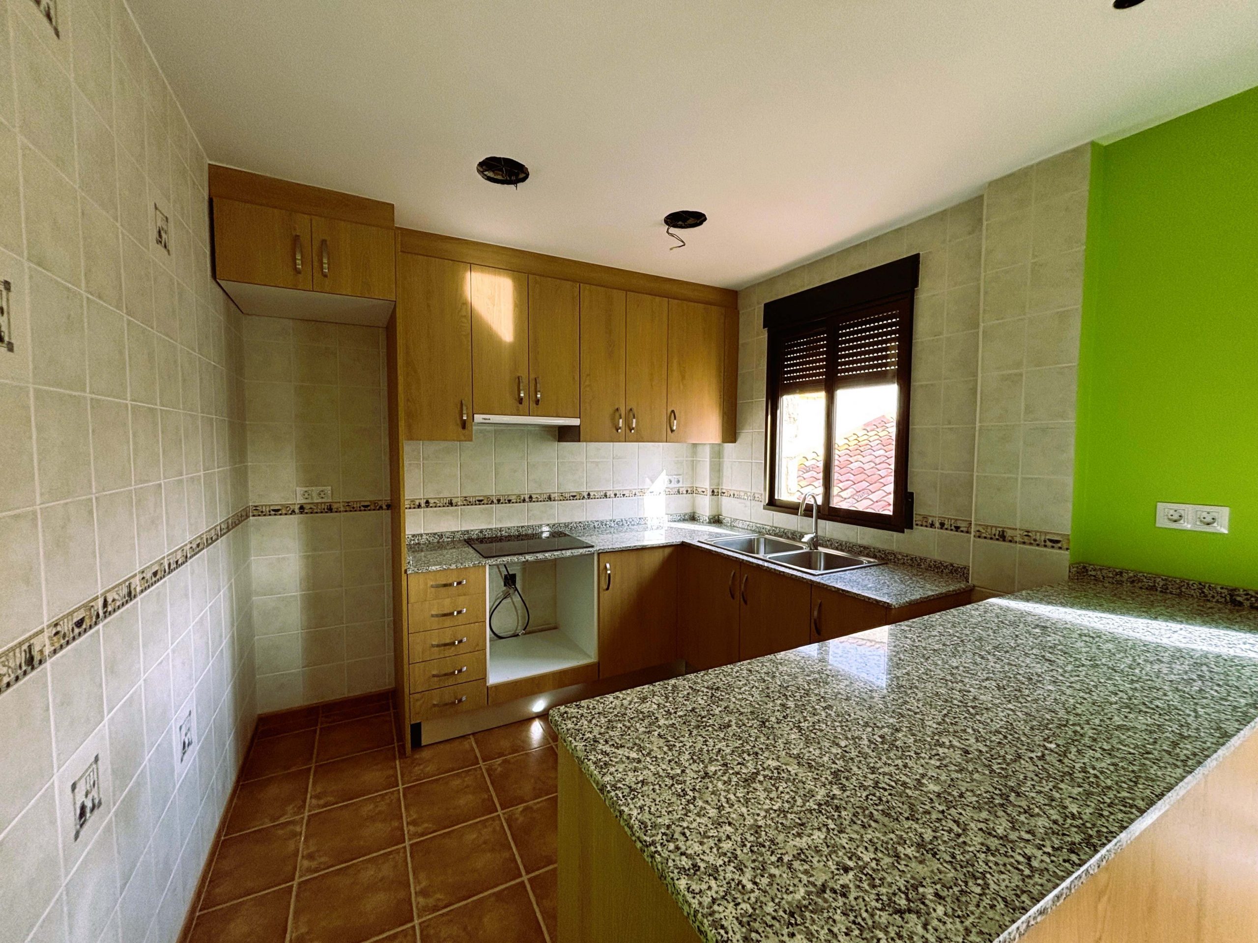 La vivienda es totalmente nueva a estrenar y cuenta con una excelente distribución: dispone de tres dormitorios, un amplio baño completo, y un espacioso salón-comedor muy luminoso con cocina integrada, creando un ambiente moderno y funcional.